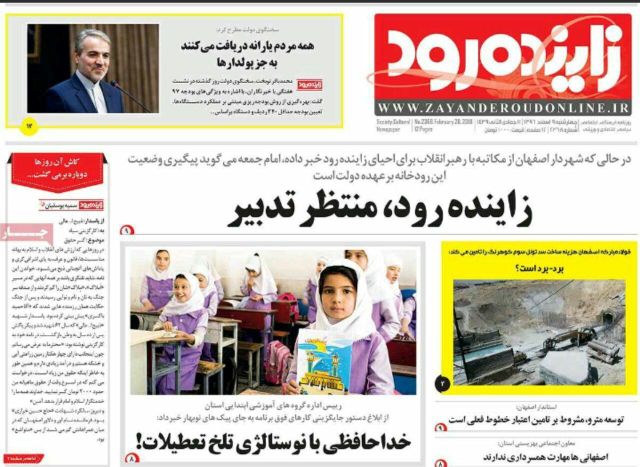 "،عقربه کاهش قیمت ها گیر کرده است "،"شپش به مهد کودک ها رسید"،زاینده رود منتظر تدبیر "از تیترهای انتقادی روزنامه های صبح امروز اصفهان است.
