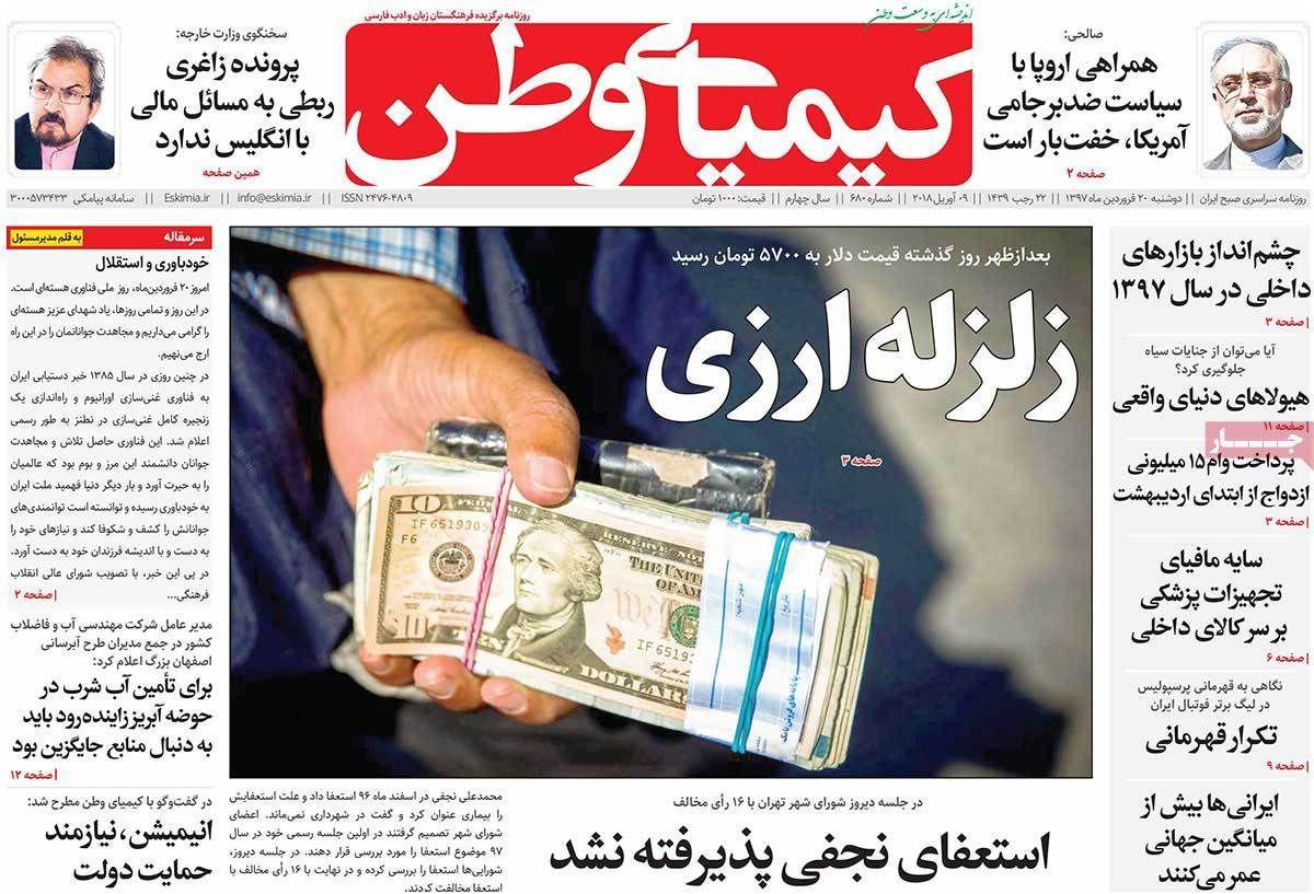 زلزله ارزی ،دلار یاغی و برخی اتفاقات در شهرداری فاجعه است از دیگر تیترهای روزنامه های اصفهان در 20 فروردین است.