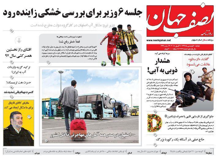 امروز روزنامه های اصفهان در تیتر های درشت خود از بحران آب در اصفهان نوشتند.
