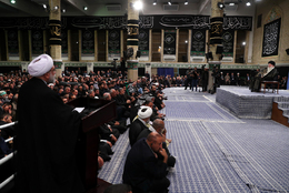 رهبر انقلاب اسلامی دو ملت ایران و عراق را، دو ملتی توصیف کردند که جان و دل آنها به یکدیگر متصل است و گفتند: دشمنان تلاش زیادی برای ایجاد تفرقه میان دو ملت انجام دادند اما به لطف الهی نتوانستند و از این پس هم نخواهند توانست، زیرا عامل اصلی پیوند دهنده دو ملت ایران و عراق، ایمان به خداوند متعال و محبت اهل بیت علیهم اسلام و عشق به امام حسین (ع) است. حضرت آیت الله خامنه ای با اشاره به چهل سال توطئه و تهدید و تحریم امریکا و دنباله ها و مزدورانش بر ضد ملت ایران، خاطرنشان کردند: برغم همه این توطئه ها و به کوری چشم آنها، جمهوری اسلامی ایران از یک نهال نحیف، اکنون به یک درخت تناوری تبدیل شده که ثمرات و میوه های آن روز به روز در حال گسترش است. ایشان در پایان با اشاره به شعارهای حضار برای نابودی امریکا و رژیم صهیونیستی، تأکید کردند: با لطف و فضل الهی، این شعارها در آینده نه چندان دور محقق، و امت اسلامی بر دشمنان خود پیروز خواهد شد.