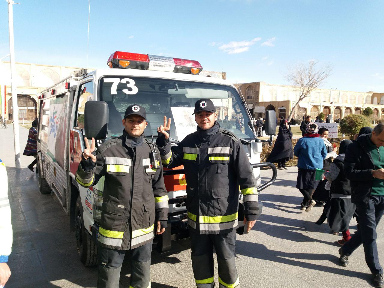 آتش نشانان اصفهانی امروز علاوه بر حضور در جشن 22 بهمن آماده خدمت رسانی به راهپیمایان نیز هستند.