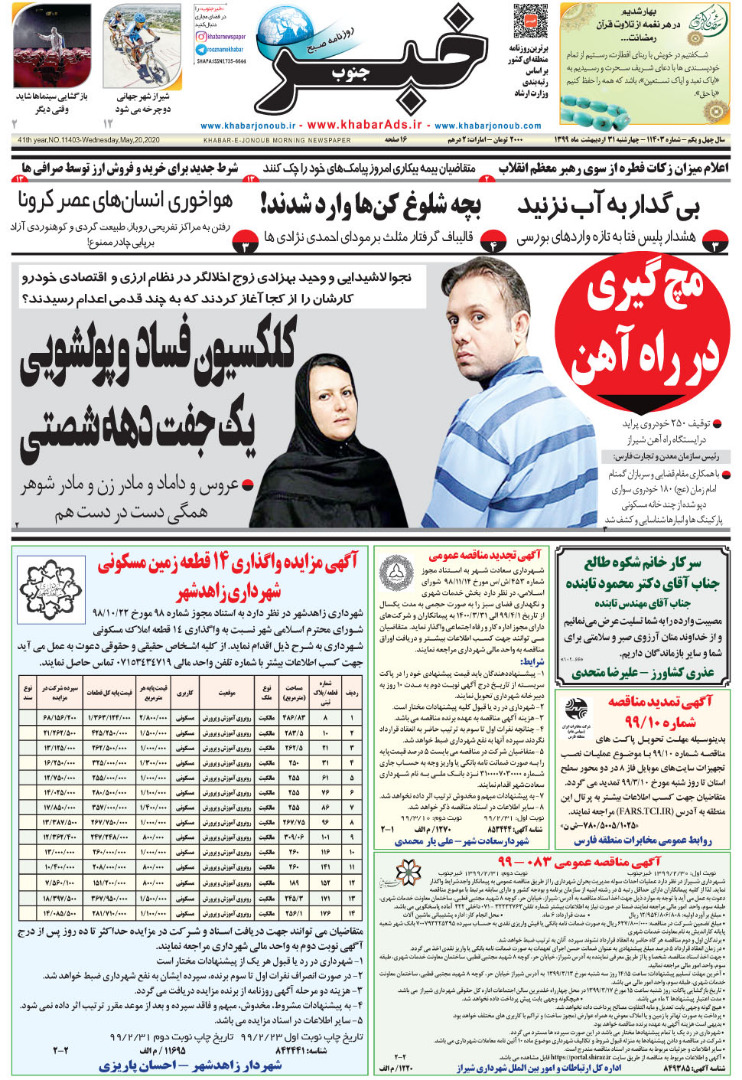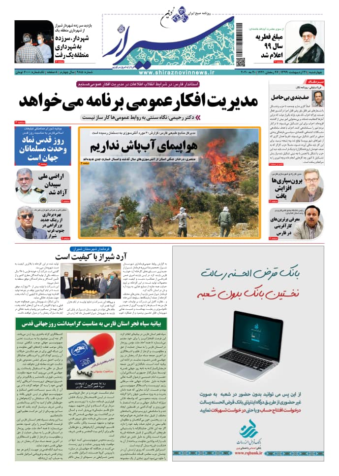 به گزارش خبرگزاری صدا و سیما، مرکز فارس، صفحات نخست روزنامه‌های امروز چهارشنبه ۳۱ اردیبهشت فارس را ببینید.