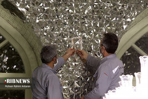 گروه عکس خبرگزاری صدا و سیما؛ حاصل هنر آینه کاری، ایجاد فضایی درخشان و پر تلألو است که از بازتاب پی در پی نور در قطعات بی شمار آینه پدید میآید. در حرم امام رضا علیه السلام از شیوههای متنوعی از آینه کاری استفاده شده است. گچبری روی آینه که با نقاشی همراه است آینه تصویر نامیده میشود؛ استفاده از گچ و آینه را در تزئین رواقهای دارالرحمه و دارالهدایه با به کارگیری طرح گره میتوان مشاهده کرد.