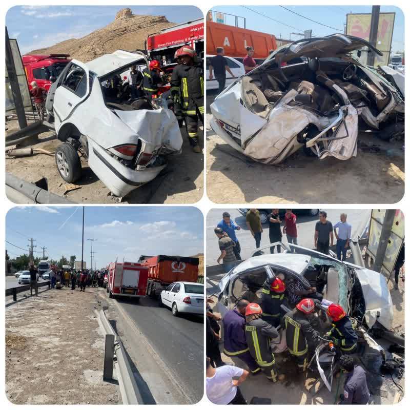 بر اثر این حادثه راننده و سرنشینان خودروی سواری سمند در داخل خودرو محبوس شده بودند و آتش نشانان پس از ارزیابی محل با استفاده از تجهیزات ویژه نجات و تثبیت کننده افراد را از خودرو خارج کردند.