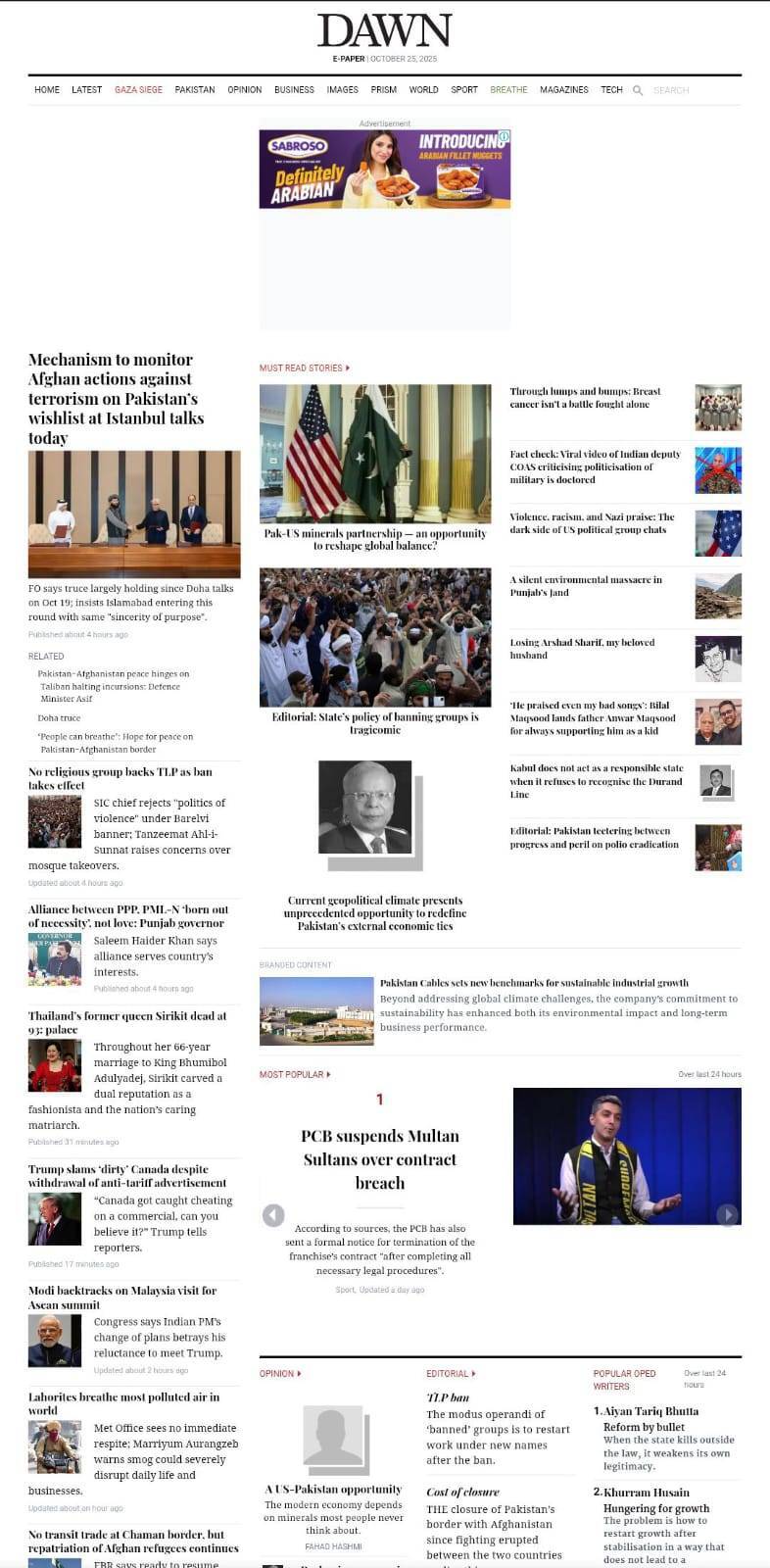 عناوین مهم اخبار مهم روزنامه‌ها و خبرگزاری‌های پاکستان شنبه ۰۳ آبان ۱۴۰۴ به شرح زیر است: