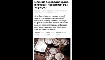 ⁃ قیمت نقره برای نخستین بار در تاریخ از ۶۳ دلار برای هر اونس فراتر رفت